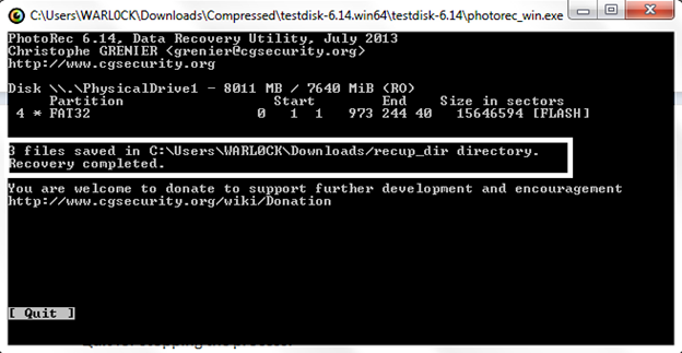I have an 8GB flash drive that is formatted and now will see how we recover image files by using PhotoRec.