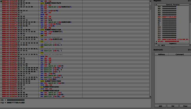For the purpose of debugging, we will use an x64 debugger known as EDB on Linux. This debugger is similar to ollydbg (windows) and is quite easy to use .Following is the default pane of EDB