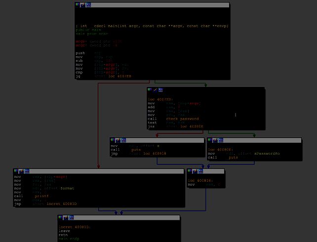 Clearly you can see that it passing argv[1] as a parameter to function check_password()