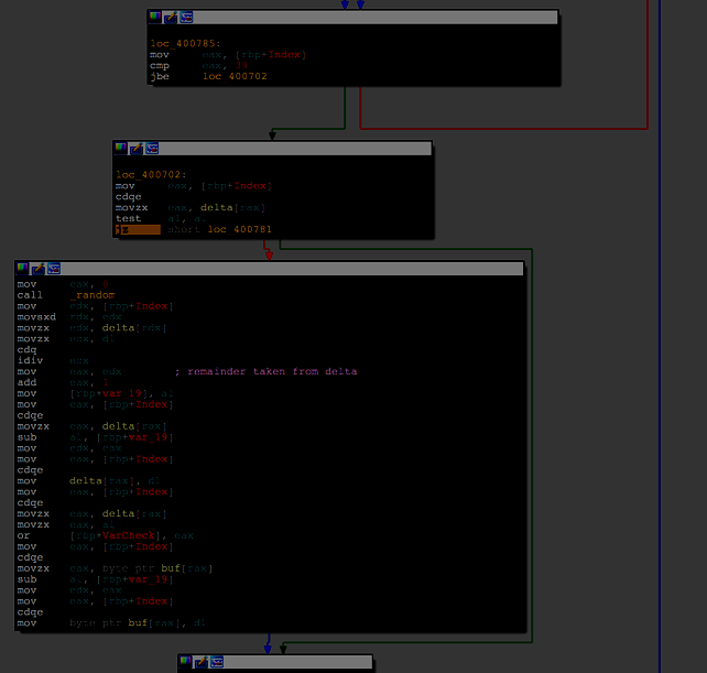 After this operation program goes in a loop and loop body is skipped if value at index of variable delta is zero