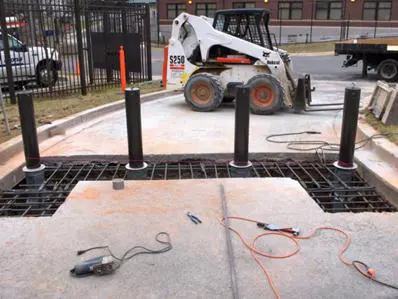 Two types of gates are vehicle and pedestrian. Vehicle gates range from simple chain link to crash gates (see Figure 13-7). In some cases, a gate is impractical or requires support to provide stronger resistance. Vehicle controls, such as the retractable bollards shown in Figure 13-8, provide this support.