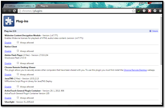 1. Type 'chrome://plugins' into the Omnibar.