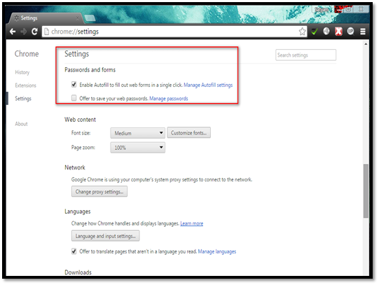 Clear the "Offer to save your web password" check box to prevent Chrome from asking to save the credentials of websites. This is very important as malware can easily store the stored credentials.