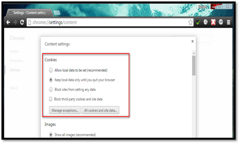 Cookie-related settings can be performed in this feature. Navigate to Settings Privacy Content settings Configure options under the "Cookies" section.