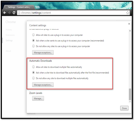 If you visit a malicious web site, it may attempt to download the malicious file on to the local system and execute it. It is better to always know what type of file you are about to download. The automatic download is the feature that allows you to configure the download settings.