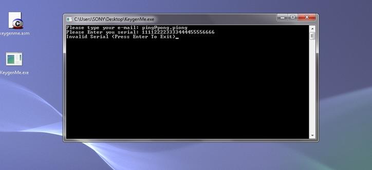 Assemble then link the keygen's source code and run it . You will be able to generate multiple valid serial numbers for the KeygenMe by pressing Return key.