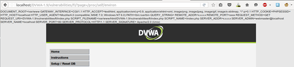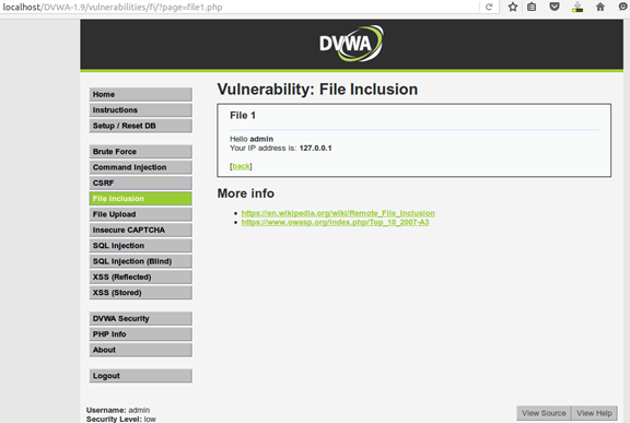 Screenshot from the LFI vulnerable app implementation by DVWA.