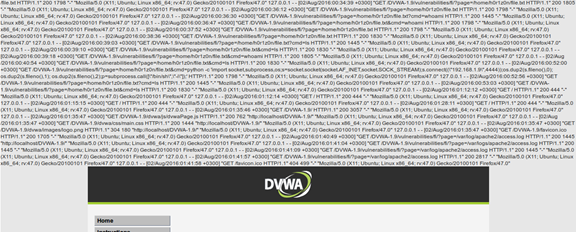 The Apache and SSH log files are very important, and we should always attempt to inject them if the previous technique has failed. The Apache log file is - most commonly - available under /var/log/apache2/access.log, and it contains all the requests directed to the HTTP server. Here is how the access log file looks like when we attempt to include it.