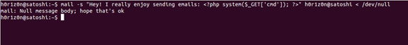 By including the /var/mail/h0r1z0n file (of course, change h0r1z0n with an available user) and by following the previous steps, we will gain a shell again!