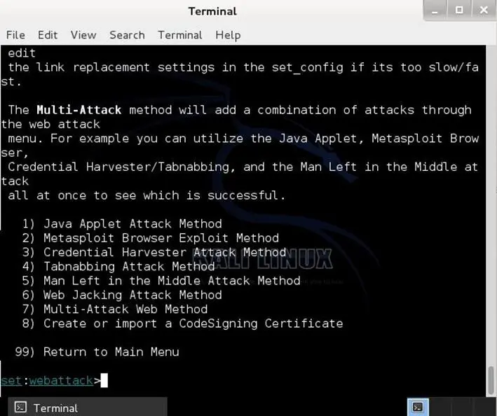 The web attack module is a unique way of utilizing multiple web-based attacks in order to compromise the intended victim. This module is used by performing phishing attacks against the victim in hopes they click the link. There is a wide-variety of attacks that can occur once they click on that link. We will dive into each one of the attacks later on.