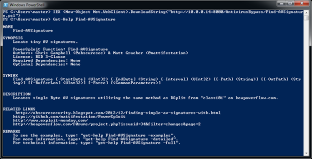 We can easily install the AntiVirus Bypass PowerShell script "Find-AVSignature" using: