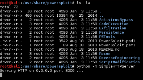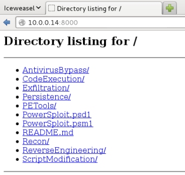 Now all the files in the PowerSploit directory can easily be accessed over http://<ip_address>:8000/