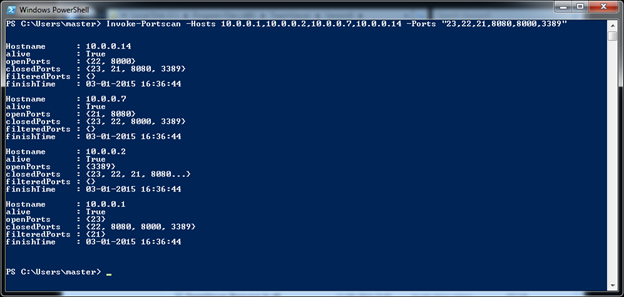 There are a number of options using which you can customize the port scan. Use "Get-Help Invoke-PortScan –full" for all options.