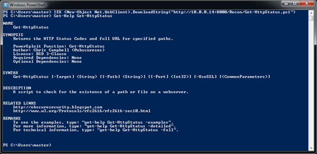 We can easily install the Recon PowerShell script "Get-HttpStatus" using: