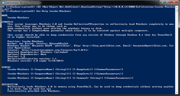 We can easily install the Exfiltration PowerShell script "Invoke-Mimikatz" using: