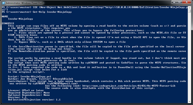 We can easily install an Exfiltration PowerShell script "Invoke-NinjaCopy" using: