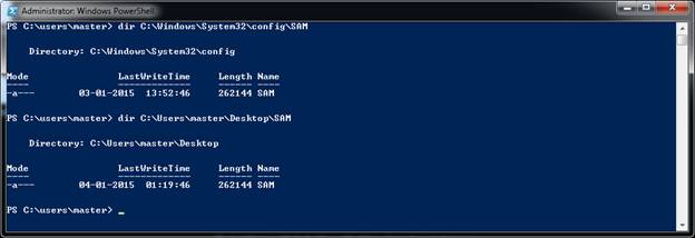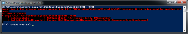 Execute "Invoke-NinjaCopy" using the following the command to copy the protected "SAM" file: