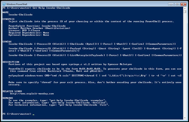 Get-Help Invoke-Shellcode