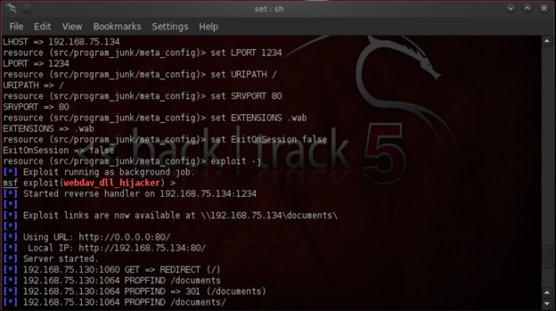To perform the WebDAV dll hijacking using SET, follow these steps: