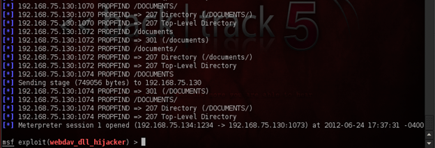 In this article, I will explain WebDAV application DLL hijacking exploitation using our all time favorite, Metasploit. Here we will cover the module which has a directory of file extensions that can lead to code execution. This module presents a directory of file extensions that can lead to code execution when opened from the share.