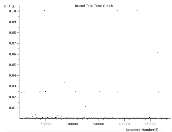 - The x-axis represents the TCP sequence number, while the y-axis represents the RTT in seconds