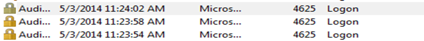 After this, I log off my machine, and entered the password incorrectly three times in attempt to impersonate a brute force attack.