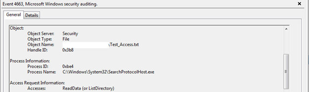 After this, I accessed the "Test_Access" file, which generates an event in Security logs with Event ID 4663, giving user name, action performed, time it was accessed, etc. This useful information can be fed into the SIEM solution through security logs to detect any unauthorized or suspicious object access.