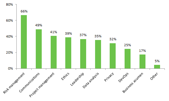 When asked what non-traditional skills or competencies are important to developing and retaining cybersecurity talent, respondents ranked risk management (66%), communications (49%) and project management (41%) skills the highest.