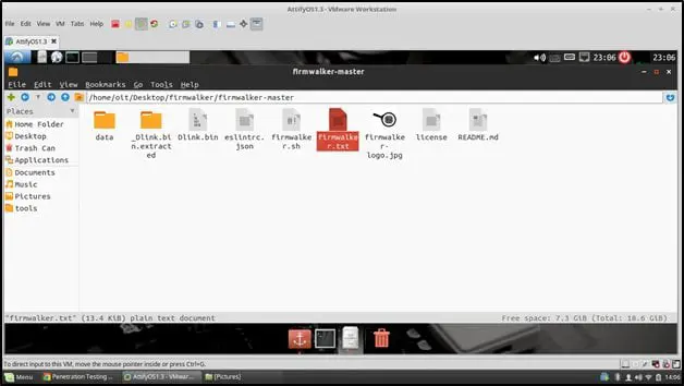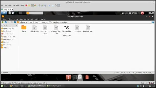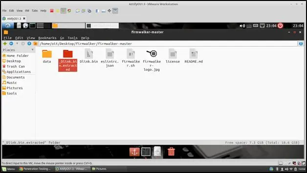After downloading, copy the file into Firmwalker folder as shown below (I have renamed the file as DLink.bin) –