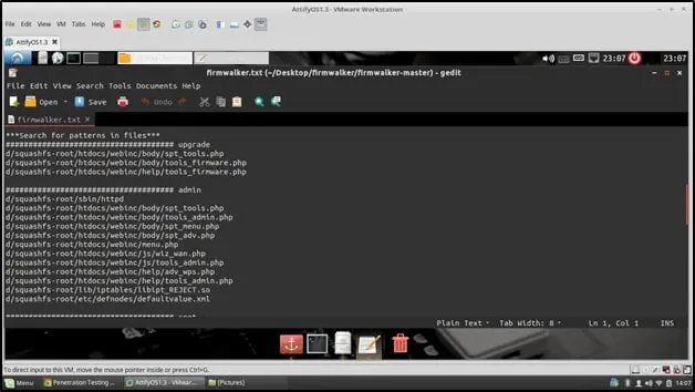 The output of the result is saved in the file names Firmwalker.txt. The screenshots are shown below –