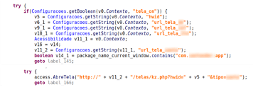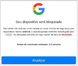 As observed on other malware this line, it avoided the Google Play Store protections and was disseminated legitimately on the official store, increasing the number of infections. In short, when the users are navigating a specific website, often disseminated via social engineering campaigns, they are asked to install a new app to fit the new updates. Figure 1 below shows a print of the malicious window in the Portuguese language.