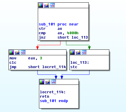 This first technique (Figure 10) compares the segment selector of that points to the TSS (Task State Segment) of the current task to 0x4000. This is an anti-VMware technique since this value is 0x4000 under VMWare [2].