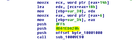 Figure 3 shows an occurrence of 0xDA1EDA20 that will be replaced by the first random double-word in the rootkit driver.