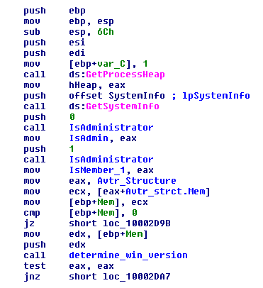 This DLL is the second level dropper, and it is the one responsible for loading the Rootkit. DllMain will end up calling the DLL's Avtr_main_func which starts by checking if the current user is an administrator (Figure