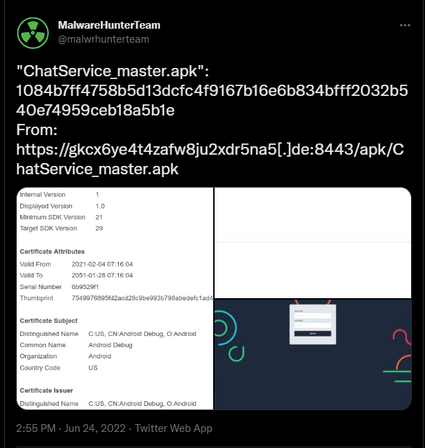 The new campaign has been ongoing since April 2022, and the operators behind the threat developed a website to download a potential legitimate app to lure victims. As mentioned by some security experts, “the phishing sites were masked as genuine websites for downloading a messaging application that provides secure communication.”