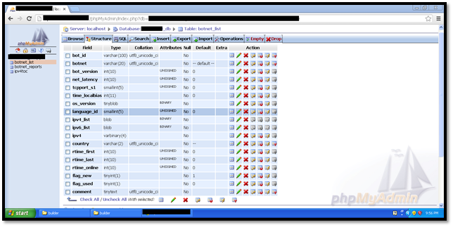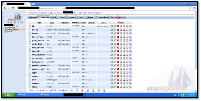 - botnet_list—Contains the list of bots and botnets