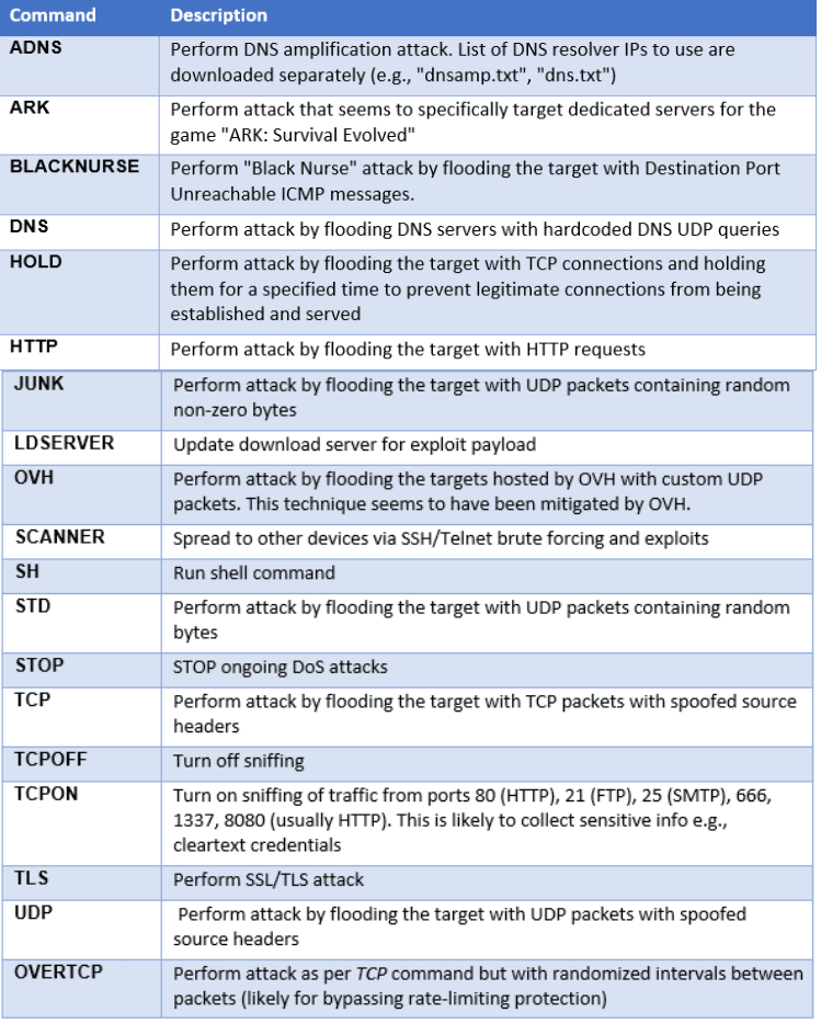 Botnet commands and DoS