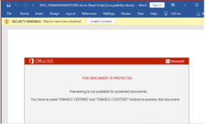 Figure 3: Emotet needs the execution of macros option enabled to continue the infection chain.
