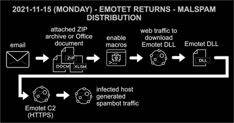 Figure 4: Chain of events for Emotet infection on Monday 2021-11-15 (source).