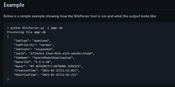 Fireeye worked in this way and released a tool called BitsParser. In short, the tool parses BITS databases and returns information about jobs executed on endpoint systems. After that, the analyst should look through the results and identify any malicious artifact or even if an abnormal schedule exists.