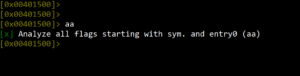 We can analyze the binary using the aa command. The aa command analyzes all flags starting with symbols, functions and the program’s starting point.