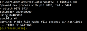 Figure 14. Launching radare2 with the -d option