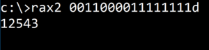 Figure 1. Using rax2 to convert binary 0011000011111111d to integer 12543