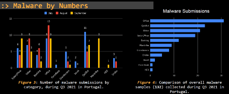 Figure 1: Different malware families disseminated during Q3 2021 in Portugal (source).