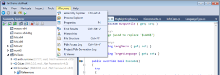 DotPeek is a standalone tool based on ReSharper’s bundled decompiler. It can decompile any .NET assembly into equivalent C# or IL code. The decompiler supports multiple formats including libraries (.dll), executables (.exe), and Windows metadata files (.winmd).