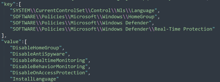 During the execution of the ransomware, the ransomware configuration is decrypted as a JSON object containing the different fields.