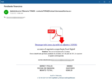 The Mekotio’s infection chain starts with a phishing template that lures the victim to download a zip file from a compromised server. Figure 1 below shows the email template in the Spanish language.